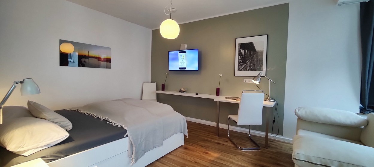 Egal ob als Ferienwohnung oder Messeapartment, diese Suite ist mit seiner geschmackvollen und modernen Ausstattung eine ideale Unterkunft für Geschäfts- und Privatreisen.
