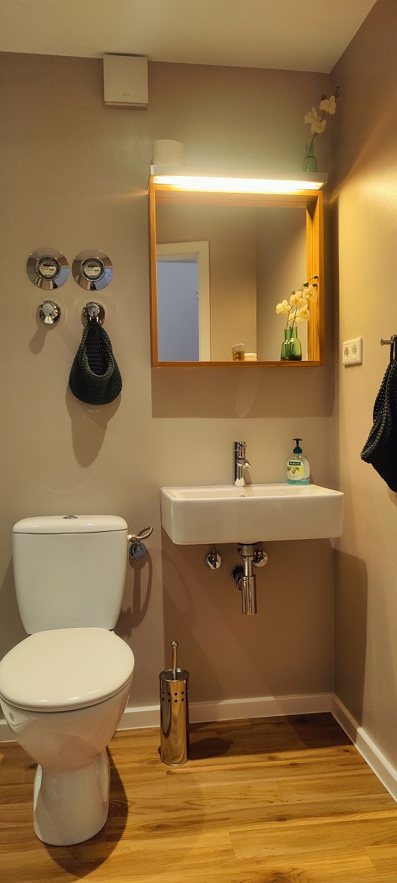 - ein zeitgemäß eingerichtetes Bad mit Regendusche und Föhn